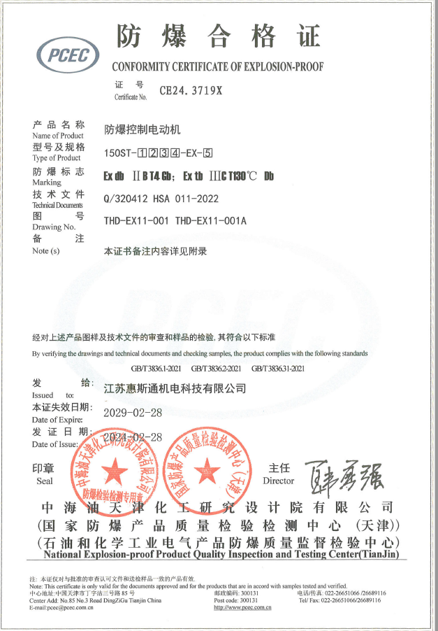 150基座ⅡBT4大扭矩防爆控制电动机证书