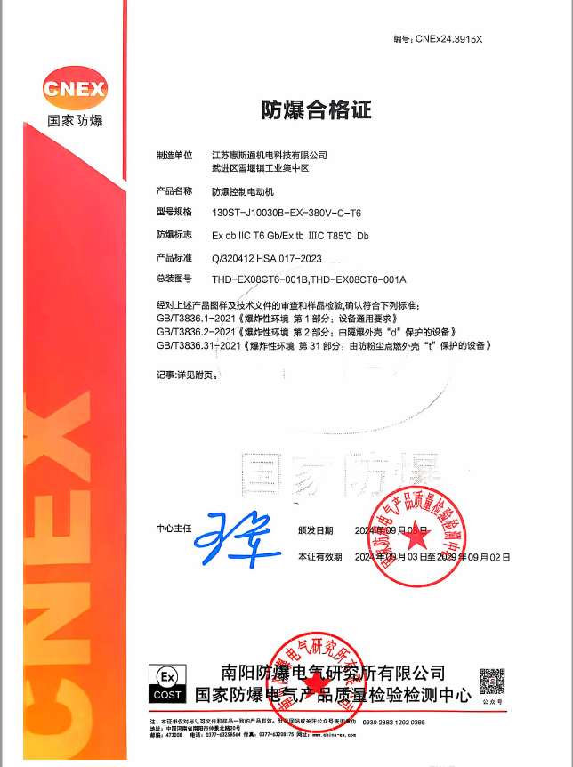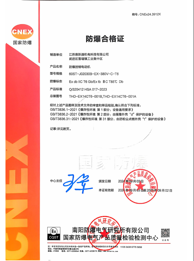60基座ⅡCT6防爆控制电动机证书