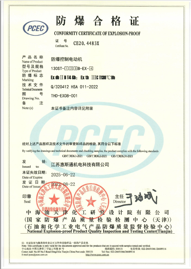 150基座ⅡBT4大扭矩防爆控制电动机证书